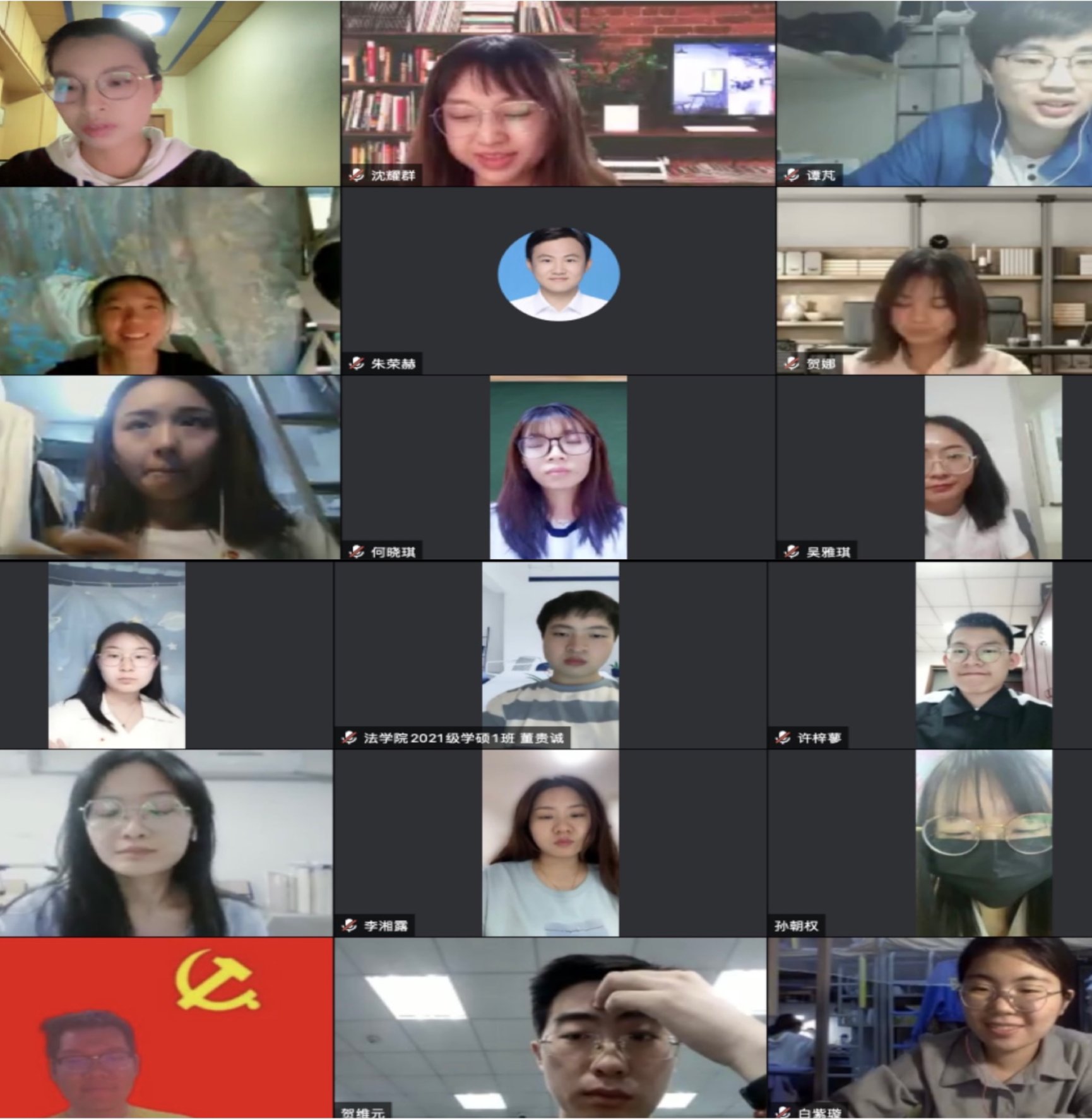2021年4月24日20:00,国产精品 2021级学硕二班、学硕一班联合于线上举办了“京师法‘典’青春宣讲”活动。本次活动面向21级学硕全体成员,我班班级、团支部、党支部积极共建,共同组织了本次活动,共计50人参与本次活动。会议内容分为三项,第一项是由博士生师兄为学硕二班、学硕一班的全体同学作“法学硕士生论文写作与发表点滴心得分享”。第二项则由张心妍同学为大家分享其作为冬奥会志愿者的经历。第三项由钱坤同学为大家分享百年团史。