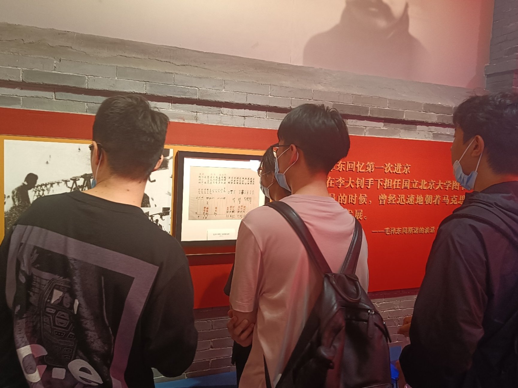 而在党员张子泽同志看来,本次展览不仅具有沉浸式的互动体验感,也具有深刻的党史教育性。在展览中,我们这些新青年注意到有一个别致的小按钮,询问工作人员后得知这是以“李大钊先生当时写给进步青年的一封信”为观展线索,通过在纸上加盖亢慕义斋图章,同学们纷纷表示要把盖了图章的信纸保留起来,以铭记李大钊等革命先辈们的光辉事迹。90年前的今天,日本蓄意制造并发动了侵华战争,为中国人民带来了长久的苦痛与耻辱,而今我们享受着革命先辈用智慧与血汗换来的和平,更要牢记我们中国人民的初心与使命。勿忘国耻,吾辈自强。党史教育的是过往,教育之后重要的是我们对于过去的思考、对现在的把握以及对于未来的布局。