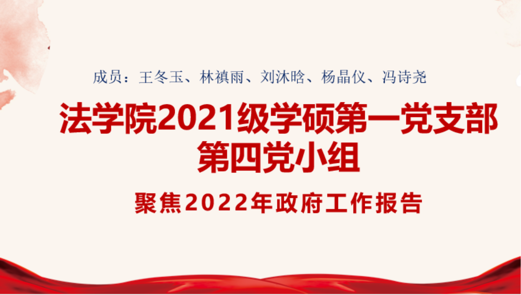 2022年3月25日,国产精品 2021级学硕第一党支部在线上召开3月理论学习活动,主题为“聚焦2022年政府工作报告”。本次活动由第四党小组的王冬玉同志、林禛雨同志、刘沐晗同志、杨晶仪同志、冯诗尧同志负责,共16名党员同志参会。
