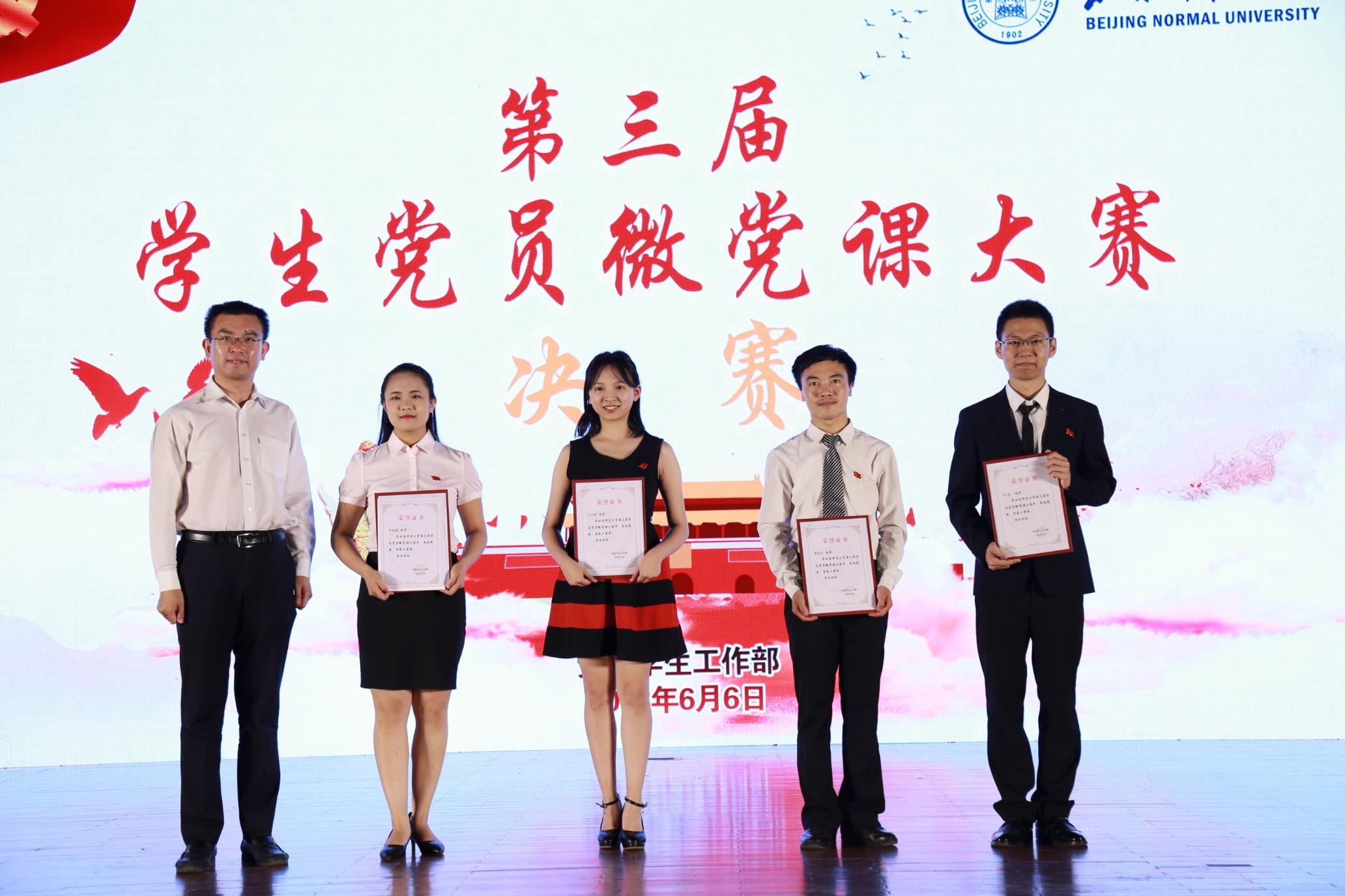 2018年6月6日下午,国产精品 第三届学生党员微党课决赛在学生活动中心落下帷幕。国产精品 2015级本科生党支部书记、2015级本科生李勇同学在经过初赛、复赛的激烈角逐之后,顺利晋级决赛,并获得了比赛三等奖和“最佳人气奖”,为国产精品 争得荣誉。本次比赛由我校本科生工作处主办,主要围绕党的十九大精神、学校第十三次党代会精神、习近平新时代中国特色社会主义思想等内容开展。本次大赛于2017年12月启动,在初赛的基础上,于2018年5月8日举办复赛,经过教师评审,共有来自各部、院系的9名选手进入决赛。
