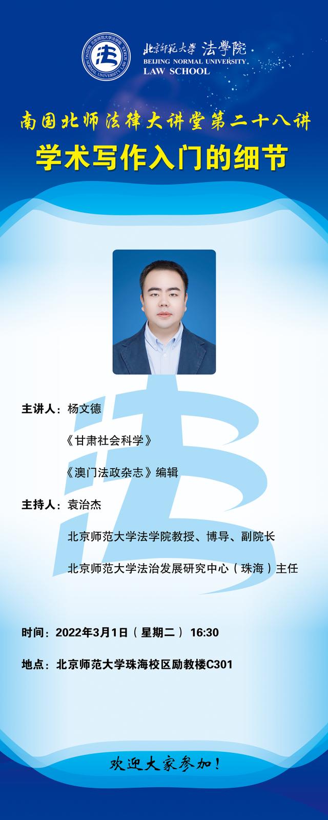 【02.28】南国北师法律大讲堂第二十八讲:学术写作入门的细节/主讲人:杨文德