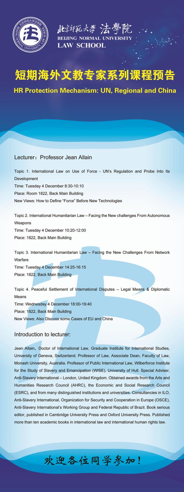 【12.04】短期海外文教专家系列课程预告/主讲人:Prof. Jean Allain