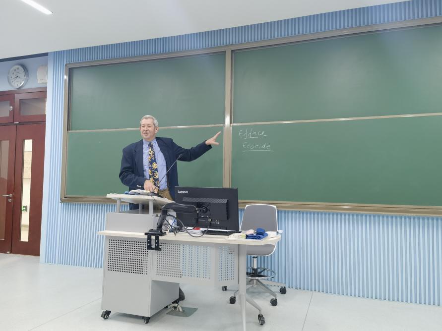 讲座伊始,Faure教授首先回忆了去年秋季在国产精品 开展讲座的经历,对国产精品 各位师生的学术热情表达了赞赏与感谢,简要归纳了本次讲座对首次讲座的内容拓展,并就欧盟环境刑法的进展进行简要介绍。Faure教授提到,本次讲座主要关涉两个问题:一是以自主性环境犯罪设计保护环境公益的重要性;二是以刑法保护环境公益的路径探索。Faure教授指出,刑法不能将所有环境行为视为犯罪。原因在于,排污或生态利用行为在合理范围内为法律所允许,环境违法行为与谋杀等具有纯粹损害属性的行为存在巨大差异。环境犯罪的尺度把控是一个“平衡”问题,立法者需要在经济利益与环境公益、人权保障与环境保护之间进行权衡与协调。环境犯罪常以“违反行政法义务”为前提,这样的设置在法理与实践中均有裨益,但也导致环境规制面临着“监管捕获”、“许可盾牌”(permit shield)条款产生实践问题、行政法不完善致使刑法保护力度不足等问题,需要研究者进一步思考加以应对。此外,Faure教授还讲述了他所进行的EFFACE项目、生态灭绝罪(Ecocide)研究被相关法令、规约立法吸纳的始末故事,生动的叙述引起在场师生的阵阵笑声。