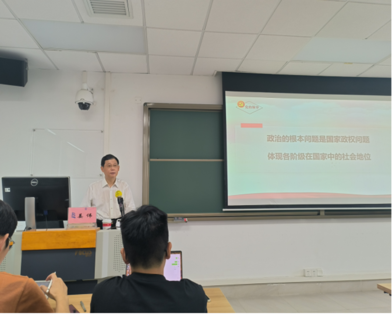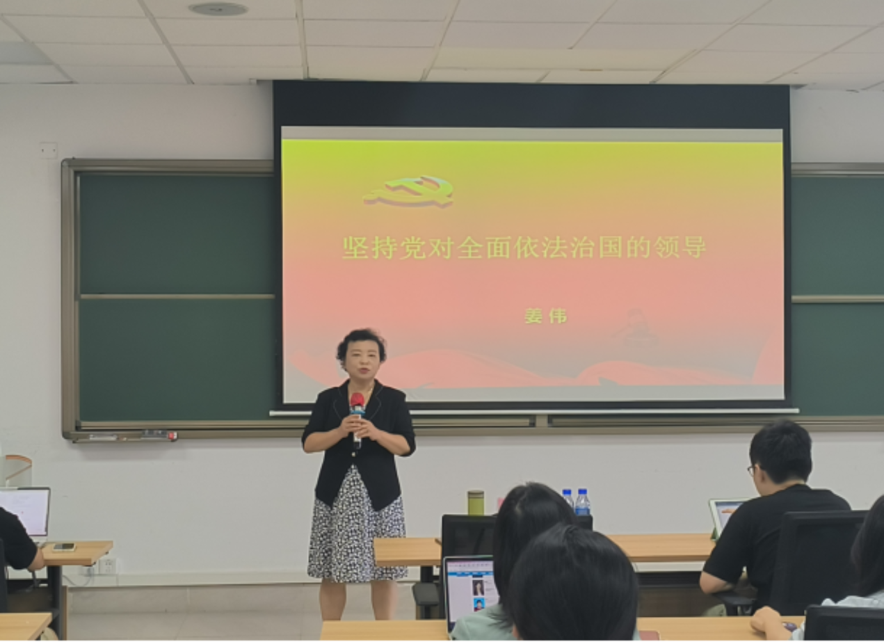 讲座伊始,王秀梅教授对姜伟会长进行了介绍。本次讲座的主题是“坚持党对全面依法治国的领导”,姜伟会长引用同学们熟知的新闻事件,比较了中西方国家政治和法治的关系的相似之处,引发同学们的思考。他指出,“法律要以社会为中心,法律是社会生活的调整器。”