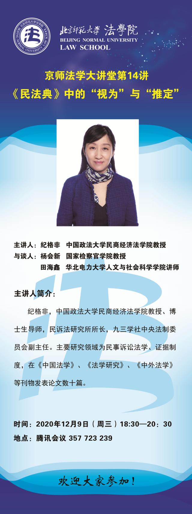 【12.09】京师法学大讲堂第14讲--《民法典》中的“视为”与“推定”/主讲人:纪格非