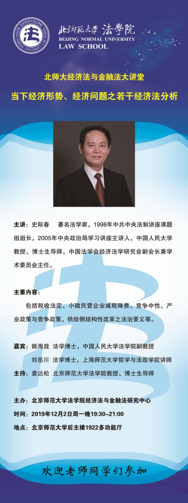 【12.02】北师大经济法与金融法大讲堂/主讲人:史际春