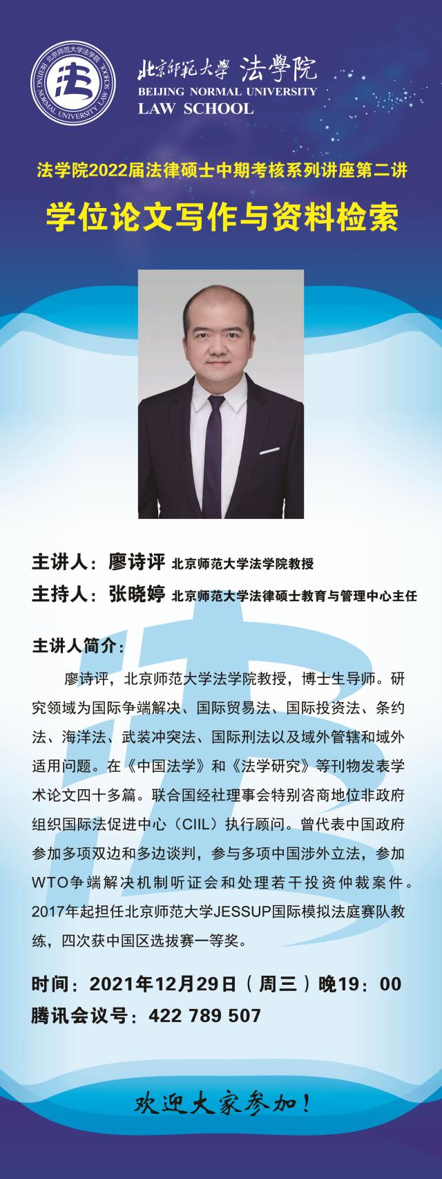 【12.29】2022届法律硕士中期考核系列讲座第二讲——学位论文写作与资料检索/主讲人:廖诗评