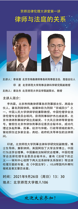 【09.26】京师法律伦理大讲堂第一讲——律师与法庭的关系/主讲人:李肖霖;印波