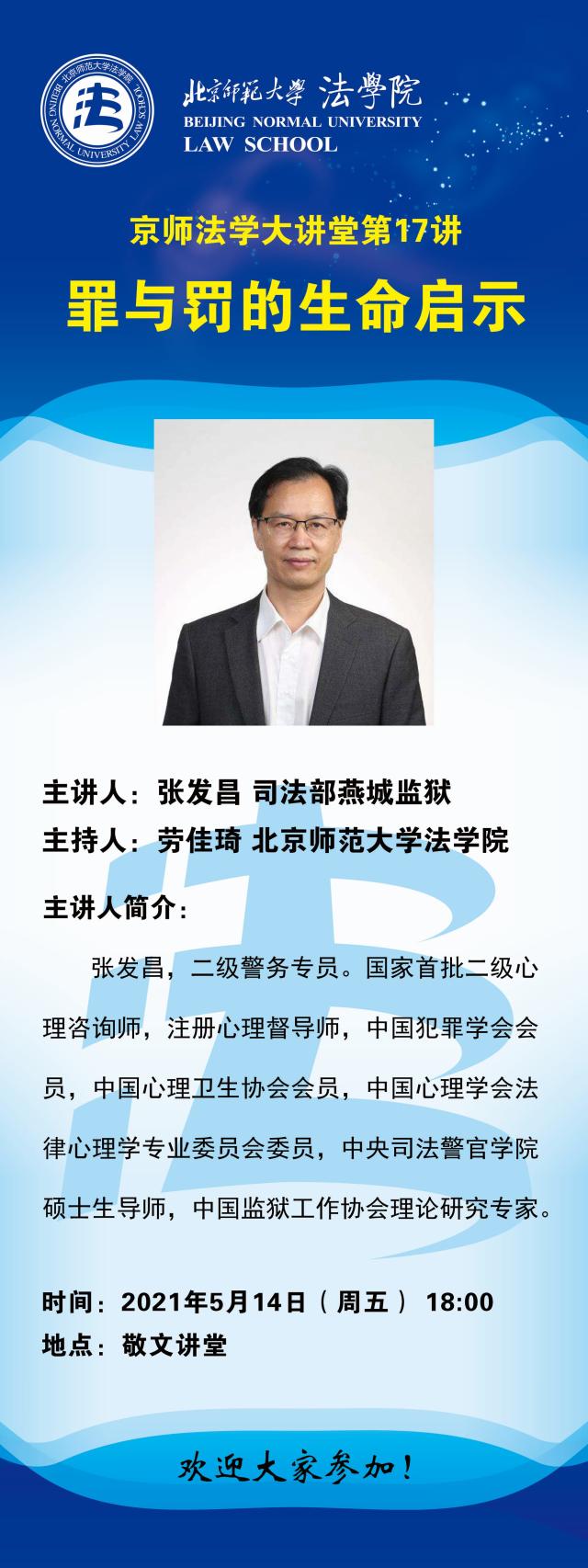 【05.14】京师法学大讲堂第17讲——罪与罚的生命启示/主讲人:张发昌