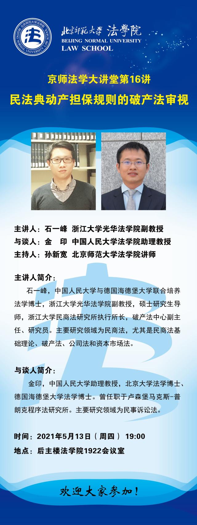 【05.13】京师法学大讲堂第16讲——民法典动产担保规则的破产法审视/主讲人:石一峰