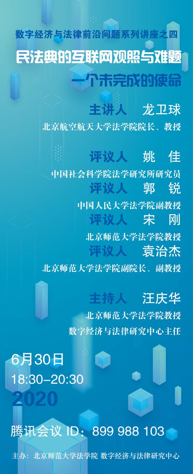【06.30】数字经济与法律前沿问题系列讲座之四/主讲人:龙卫球