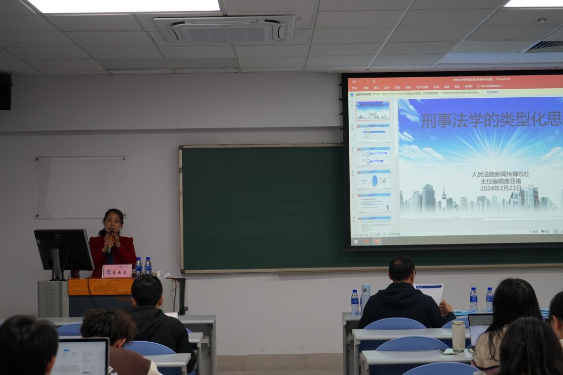 2月23日,人民法院新闻传媒总社理论文化部主任编辑唐亚南应邀走进南国北师大法律大讲堂——第四十五讲,为国产精品 珠海校区本硕博同学带来了主题为“刑事法学类型化思维”的精彩讲座。此次讲座旨在帮助学生们深入理解刑事法学的思维方式,探讨法学研究方法论,提升其法律分析问题与解决问题的能力。