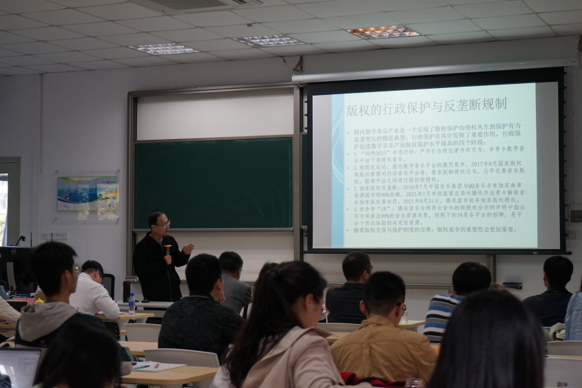 首先,魏建教授以版权的特殊性和数字时代对版权体系的冲击为切入点,向在座师生分享了版权的特征。他指出,知识生产由三方面决定,分别是创作者的创意、可利用知识的存量以及创作者可以得到的激励。版权作为知识产权的一种,具有大规模性、无形性等特征,是数字时代最先受到冲击且最先发生改变的权利体系,这为数字时代的权利保护提供了范本。