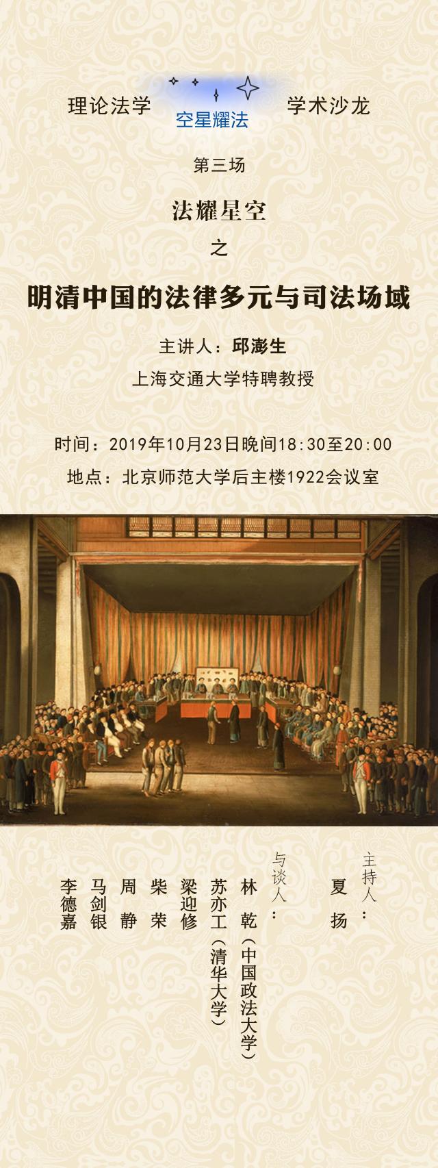 【10.23】理论法学法耀星空学术沙龙第三场-法耀星空之明清中国的法律多元与司法场域
