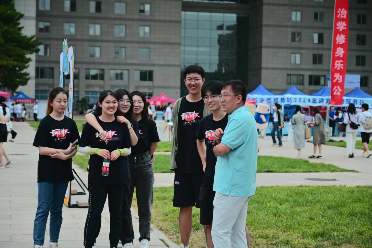 (马骏校长前来视察迎新工作并与大家合影)