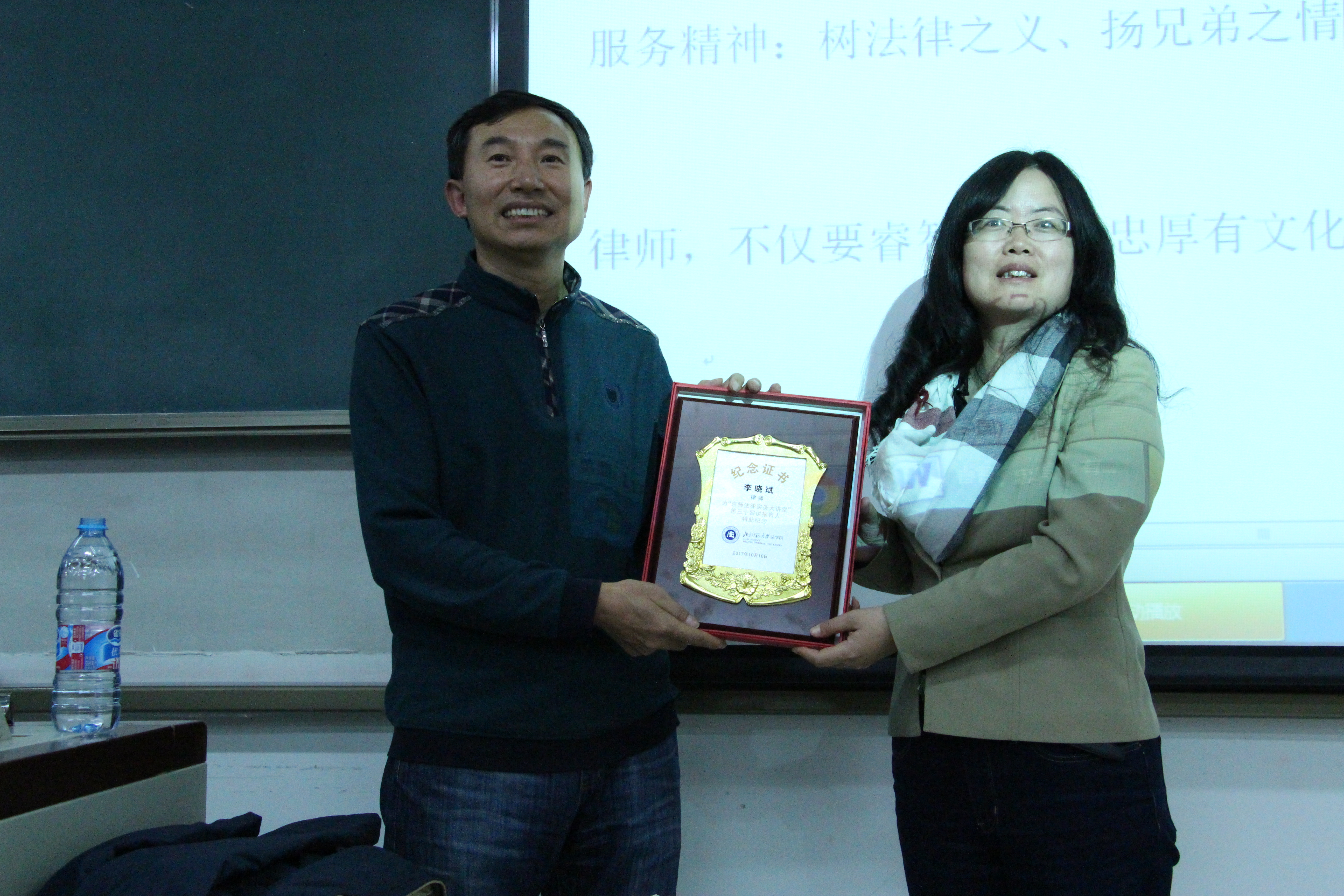 副院长柴荣教授向李晓斌律师赠送国产精品