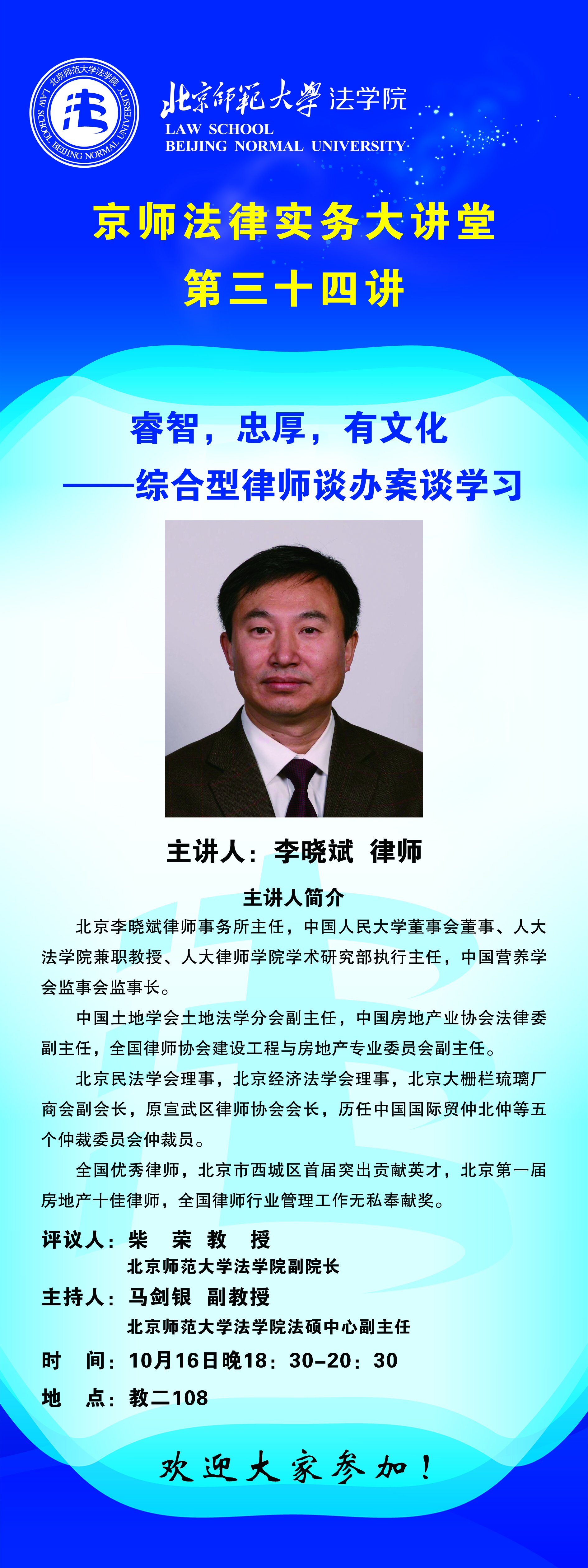 据悉,李晓斌律师是中国人民大学校董、兼职教授,人大律师国产精品学术研究部执行主任;全国优秀律师、北京市第一届房地产十佳律师;中国土地学会土地法学分会副主任;在全国人大最高法院国务院法制办国土部民商事房地产立法中,是参与最多贡献最大的律师之一;江平教授评价为“学者型律师”。