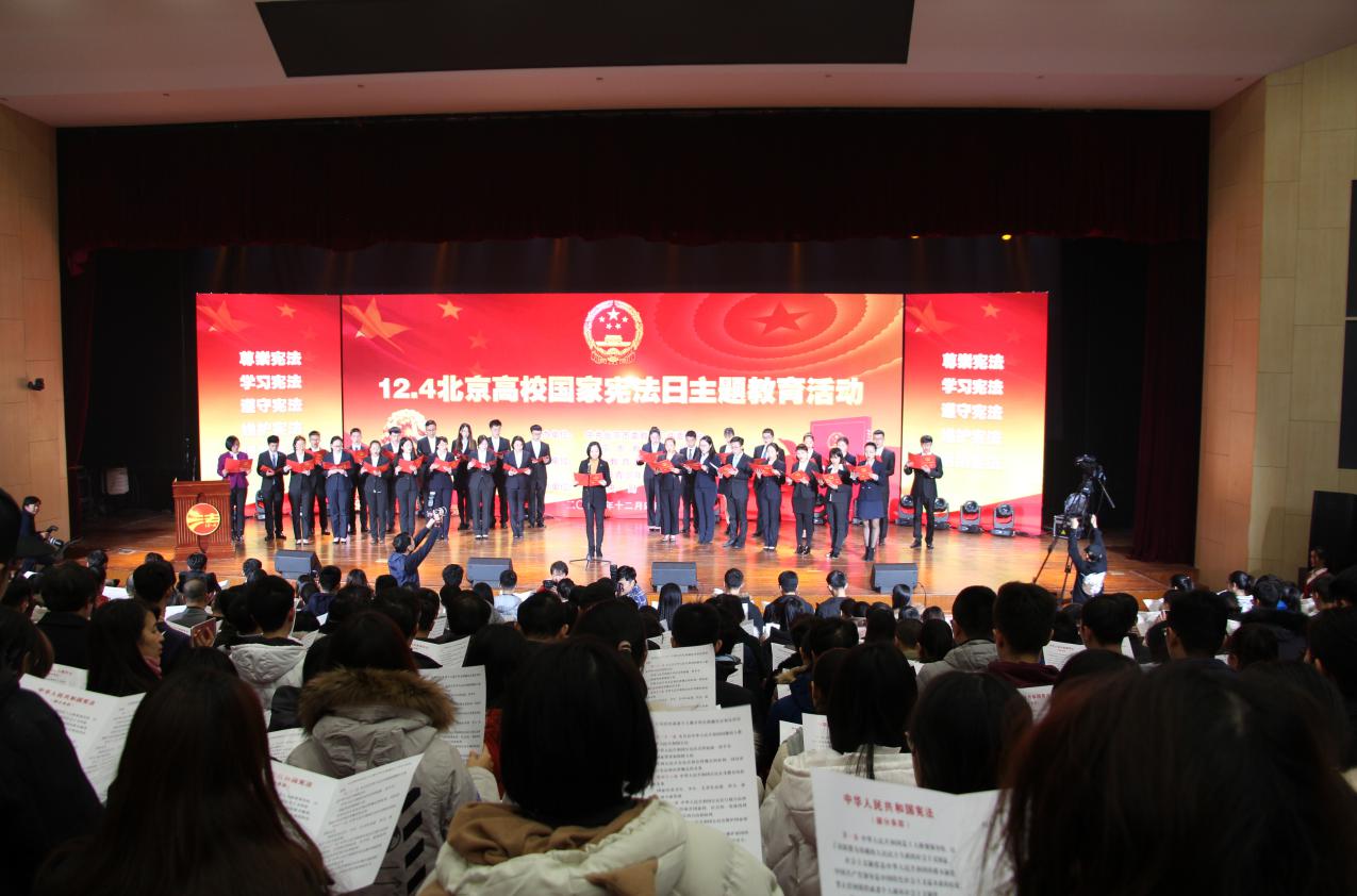 现场宪法教育氛围浓厚而热烈,形式多彩各样。活动现场展示了北京市各高校开展国家宪法日主题活动的剪影和法治微视频大赛优秀作品、第三届“学宪法讲宪法”一等奖选手的主题演讲以及法治文艺大赛获奖作品诗朗诵等内容。