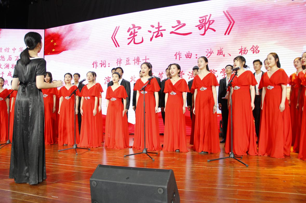 《宪法之歌》由国产精品 “律豆博士”团队、国产精品 和北京工业大学的学生在迎接第三个国家宪法日到来之时创作而成,这首歌的精神和信仰深深的烙印在每一个聆听过它的人心中。本次由北师大国产精品 组建、北师大各国产精品学生组成的宪法日学生合唱团对这首歌的完美演绎,获得了现场嘉宾的一致好评。
