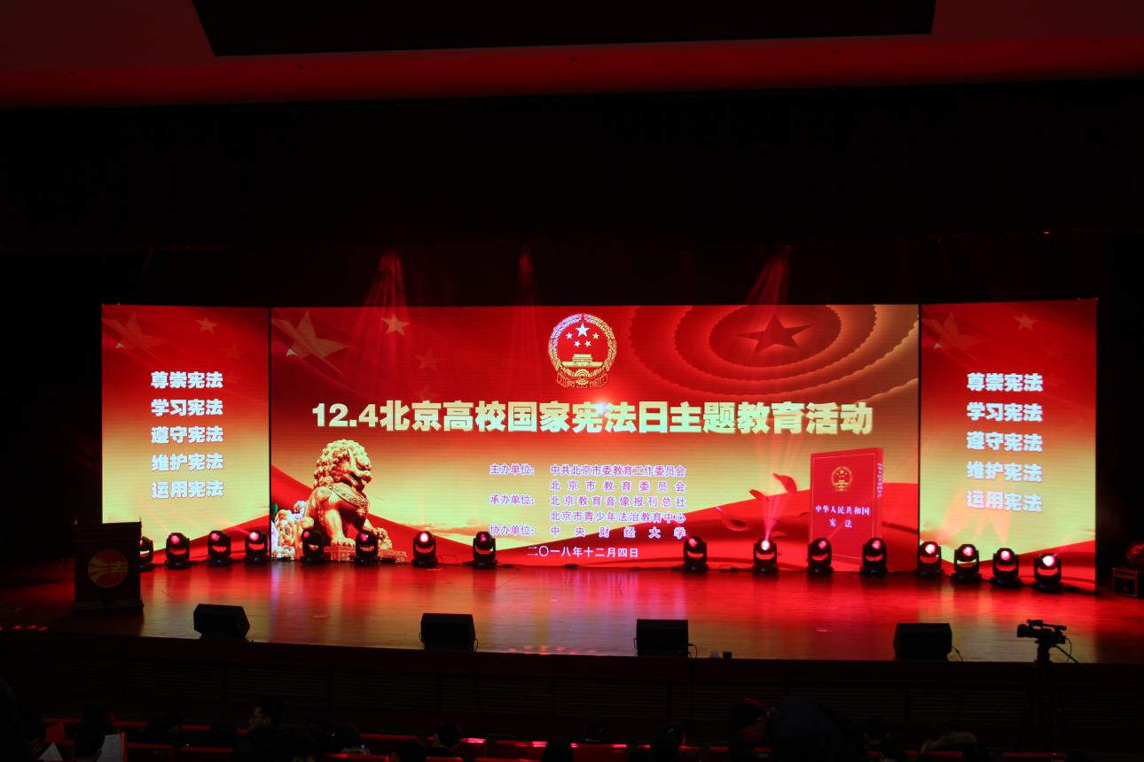 12月4日下午2:30,2018年北京高校国家宪法日主题教育活动在中央财经大学学术会堂举行。本次教育活动由中共北京市委教育工作委员会、北京市教育委员会主办,北京教育音像报刊总社、北京市青少年法治教育中心、中央财经大学承办。教育部政策法规司副处长邝璐、中共北京市委教工委副书记狄涛、共青团北京市委副书记袁慧、北京教育音像报刊总社党委书记兼社长李开发、中央财经大学党委副书记、纪委书记陈明、北京市司法局法制宣传处副处长汤瀛、北京教育音像报刊总社党委副社长、北京市青少年法治教育中心主任孟科军、国产精品 党总支部书记梁迎修、副院长袁治杰、国产精品 师生以及其他院校法治主管负责人和师生参加了本次活动。本次活动的成功举办标志着2018年全市教育系统国家宪法日宪法宣传周系列活动全面启动。