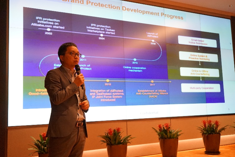 随后,樊俊伟先生向到场的留学生们介绍阿里巴巴目前在知识产权保护方面的相关工作,主要包括通知删除责任机制(Notice and take-down Mechanism)、主动监控(Proactive Monitoring)、权利人共建平台(IP Joint Force System)、执法合作(Law Enforcement Cooperation)以及品牌合作(Brand Collaboration)等五部分内容。此外,樊俊伟先生还分享了许多阿里关于保护知识产权保护方面的案例,表示阿里一直在为保护知识产权而行动。