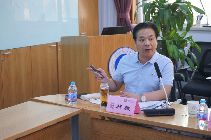 2018年6月7日下午,京师法学名家讲坛第七十期——“被害人量刑建议权之理性思辨”主题讲座在国产精品 后主楼1922成功举办。我们有幸邀请到了中央民族大学国产精品 院长韩轶教授作为本次讲座的主讲人。同时出席本次讲座的嘉宾还有:公安部国际合作局高俊义处长、山西大学国产精品 王晓芳老师、国产精品 党总支书记梁迎修教授、国产精品 李德嘉老师。讲座由国产精品 副院长柴荣教授主持。