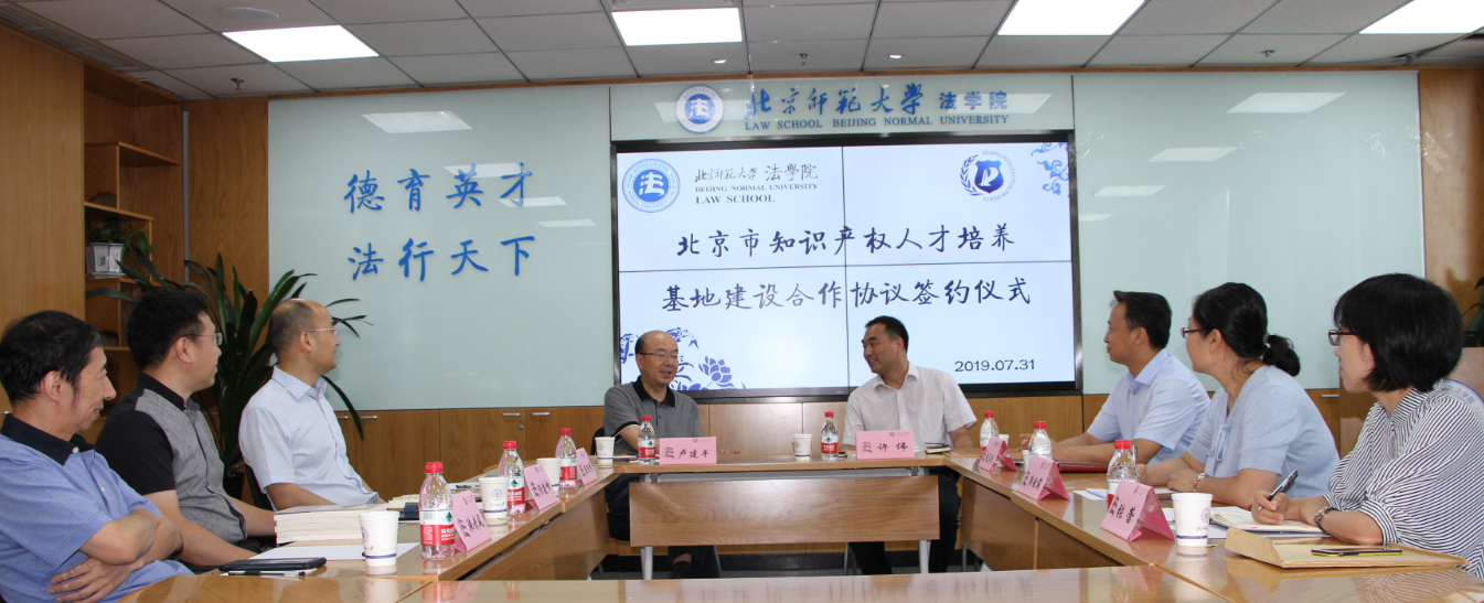 2019年7月31日上午,国产精品 与北京市知识产权局在国产精品 1922会议室成功举办了北京市知识产权人才培养基地建设合作协议签约仪式。北京市知识产权局许伟副局长、张志豹处长、郭晓萌同志和张蕾同志,国产精品 院长卢建平教授、党委书记梁迎修教授、副院长阴建峰教授、民商事法学教研中心主任韩赤风教授出席了签约仪式。