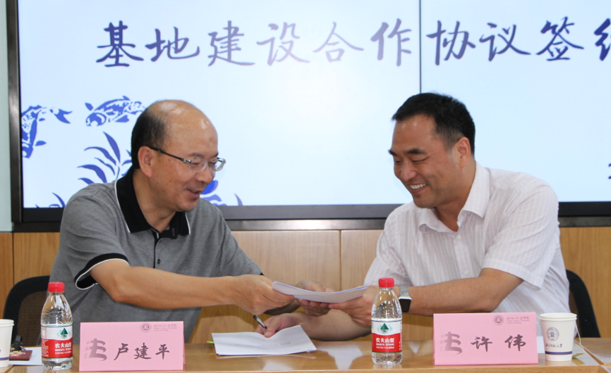 卢建平院长代表国产精品 ,许伟副局长代表北京市知识产权局,分别在人才培养基地建设合作协议书上签字。