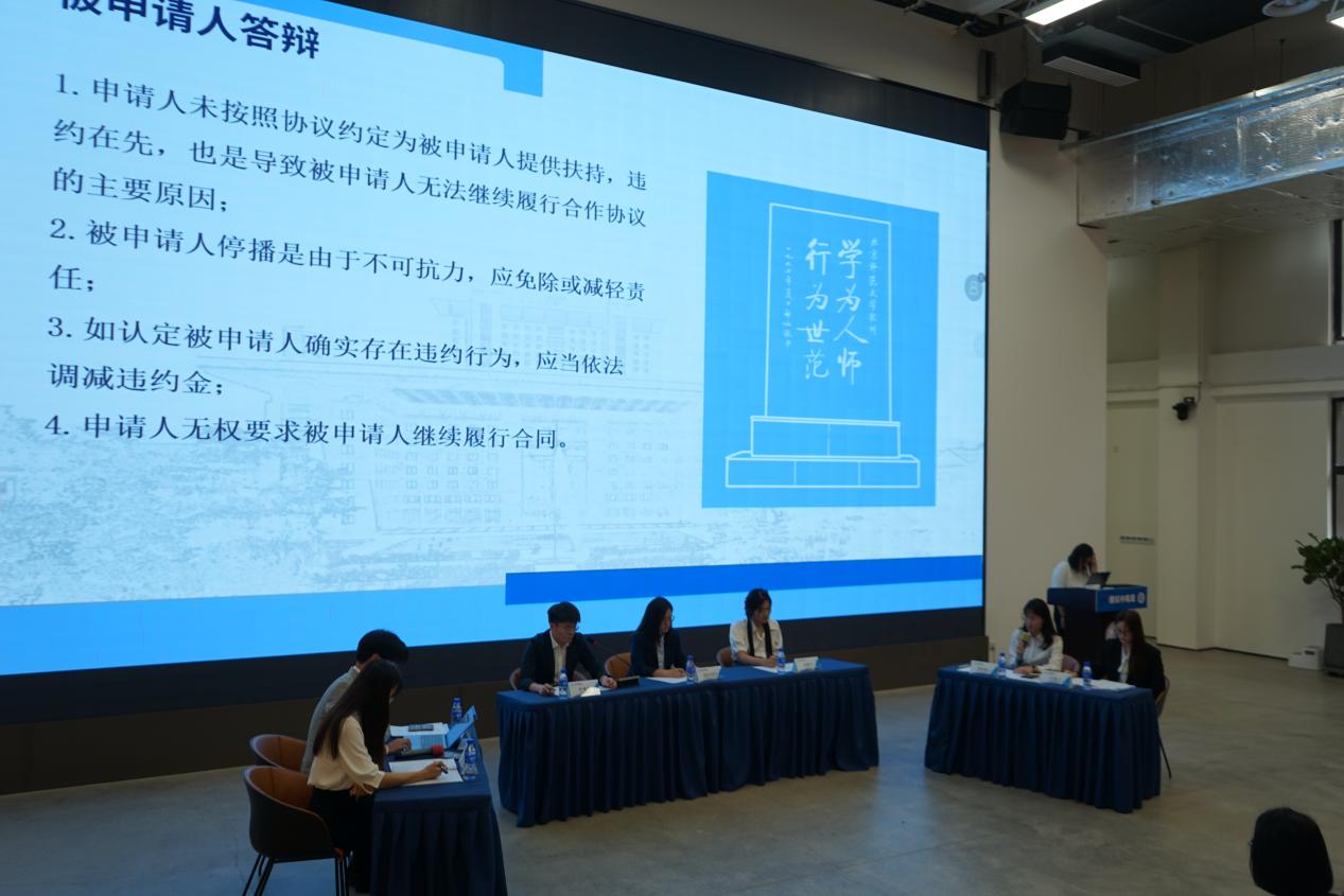 本次模拟仲裁庭审围绕一起“网络直播纠纷”案件展开,由珠海国际仲裁院副总监、仲裁二部负责人海玉担任首席仲裁员,带领北师大国产精品 7名法律硕士进行模拟仲裁庭审。在本次模拟仲裁庭中,由杨文斌同学、崔艺源同学担任仲裁员,崔晨、李旭阳同学担任申请人及其代理人,刘雅男、姚俊君同学担任被申请人及代理人,张丹宁同学担任仲裁秘书。本次模拟仲裁庭审流程共分为八个环节,分别是:案情介绍;宣布开庭、核实当事人信息、告知权利义务;陈述请求和答辩阶段;举证及质证;庭审提问环节;辩论环节;最后陈述;宣布庭审结束。