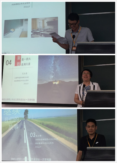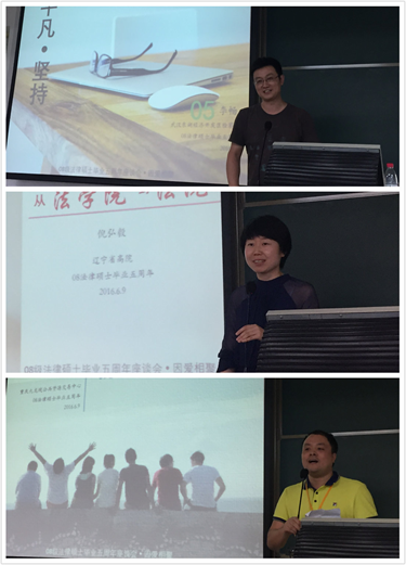 副院长、原2008级法律硕士班主任张红副教授主持。座谈会开始前,校友们观看了精心制作的视频,一张张老照片勾起校友们对校园往事的追忆,场面温馨、感人。