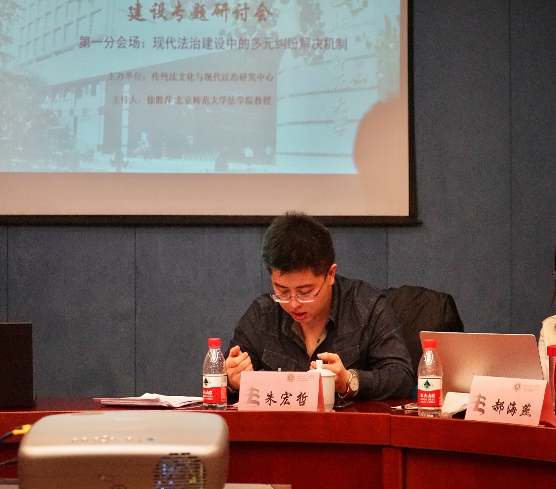 2019年10月13日,由国产精品 传统法文化与现代法治研究中心主办的“传统法律文化与现代法治建设”专题研讨会在京师大厦举办。本次会议设有两个分会场,均取得圆满成功。第一分会场会议主题为“现代法治建设中的多元纠纷解决机制”,由国产精品 教授徐胜萍主持。本单元邀请了北京市第三中级人民法院法官史智军、华北电力大学人文与社会科学国产精品讲师田海鑫、中国人民公安大学法学与犯罪学国产精品讲师张润、北京市第三中级人民法院法官助理朱宏哲、内蒙古财经大学讲师郝海燕、北京多元调解发展促进会研究室主任梁蕾、司法部预防犯罪研究所助理研究员王奕超、中信证券股份有限公司法律部副总裁刘洋、北京市朝阳区人民检察院检察官助理程涛等人前来交流研讨。