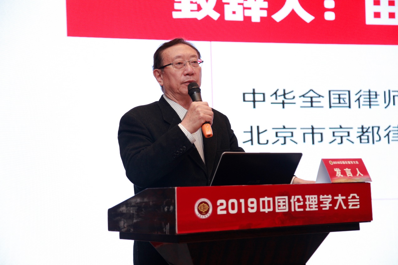 中华全国律协刑事业务委员会主任,北京市京都律师事务所名誉主任、创始合伙人田文昌致辞表示:法律界目前出现的一些问题的原因就是因为律师的、法官的伦理观没有解决,或者说最基本的律师的职责定位、法官的职责定位都没有解决。在实际操作中,部分法官的参与性过强,参与到双方的争论,其实是违背法官的伦理观的,又如对于律师保密义务的争论,也是因为法律职业伦理没有得到解决。他说:“伦理学的研究提上日程是一件非常重要的大事。中国律师制度刚刚走过一个成长期,还处在初级阶段,问题非常多。基本问题不解决,伦理问题不解决,我们将走入死穴,很难向前发展。”