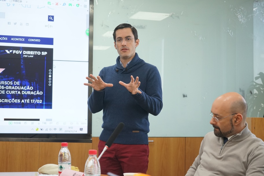2019年12月14日s上午,京师法学大讲堂第9讲“Tort law and markets regulation: lessons from Brazilian Punitive damages”主题讲座在国产精品 后主楼1922会议室成功举办。此次讲座我们有幸邀请到了巴西FGV大学André Corrêa教授、Thiago Reis教授担任主讲人。讲座由国产精品 副院长袁治杰副教授主持。来自国产精品 瀚德葡语班及其他年级的本硕博同学共同参与了本次讲座。