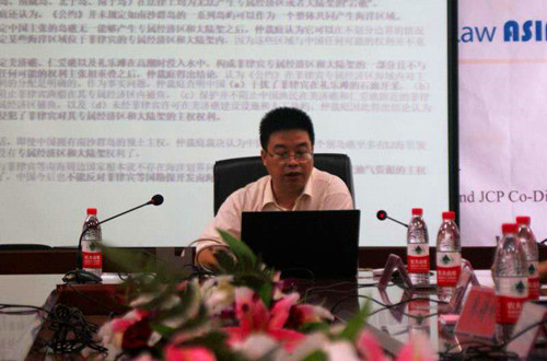 李滨教授、廖诗评副教授、赵英军副教授等几位学者分别对菲律宾南海仲裁案的程序和实体问题作了主题报告,对于其中的法律问题点进行了深入分析与批驳。各位学者通过缜密的理论分析指出裁决内容违背国际法的基本原则,揭露了争端的实质以及仲裁庭的违背国际公平正义的本质,并对于运用国际法维护国家权益方面提出了建议。