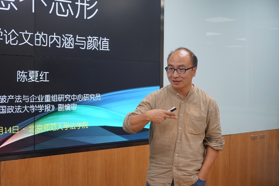 2019年3月14日19 点,京师法学学术研究生沙龙第10期--“得意忘形:法学论文的内涵与颜值”主题讲座在国产精品 1922会议室成功举办。本次讲座,我们有幸邀请到了中国政法大学破产法与企业重组研究中心研究员、《中国政法大学学报》副编审陈夏红老师担任主讲人。同时参与本次讲座的有中央民族大学国产精品 李秀鹏老师、国产精品 贺丹副教授。讲座由国产精品 副院长柴荣教授主持。