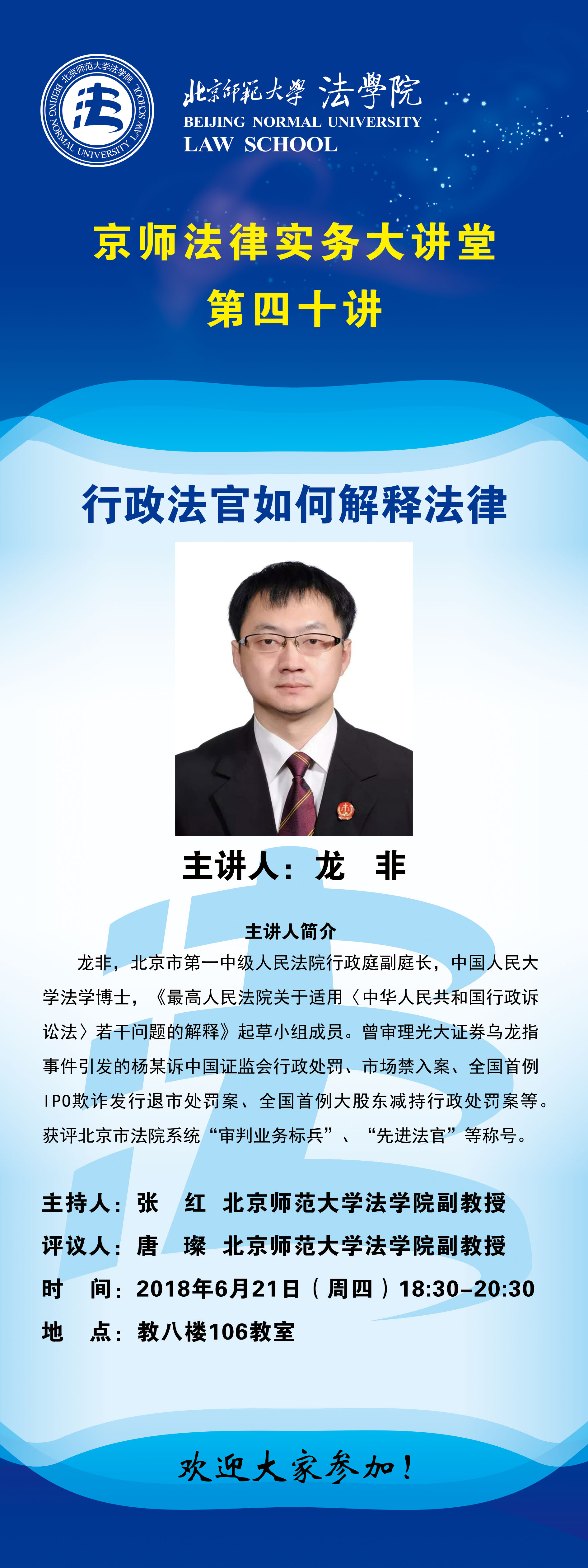 二〇一八年六月二十一日十八时至二十一时,国产精品 京师法律实务大讲堂第四十讲,在教八楼一〇六教室成功举办。