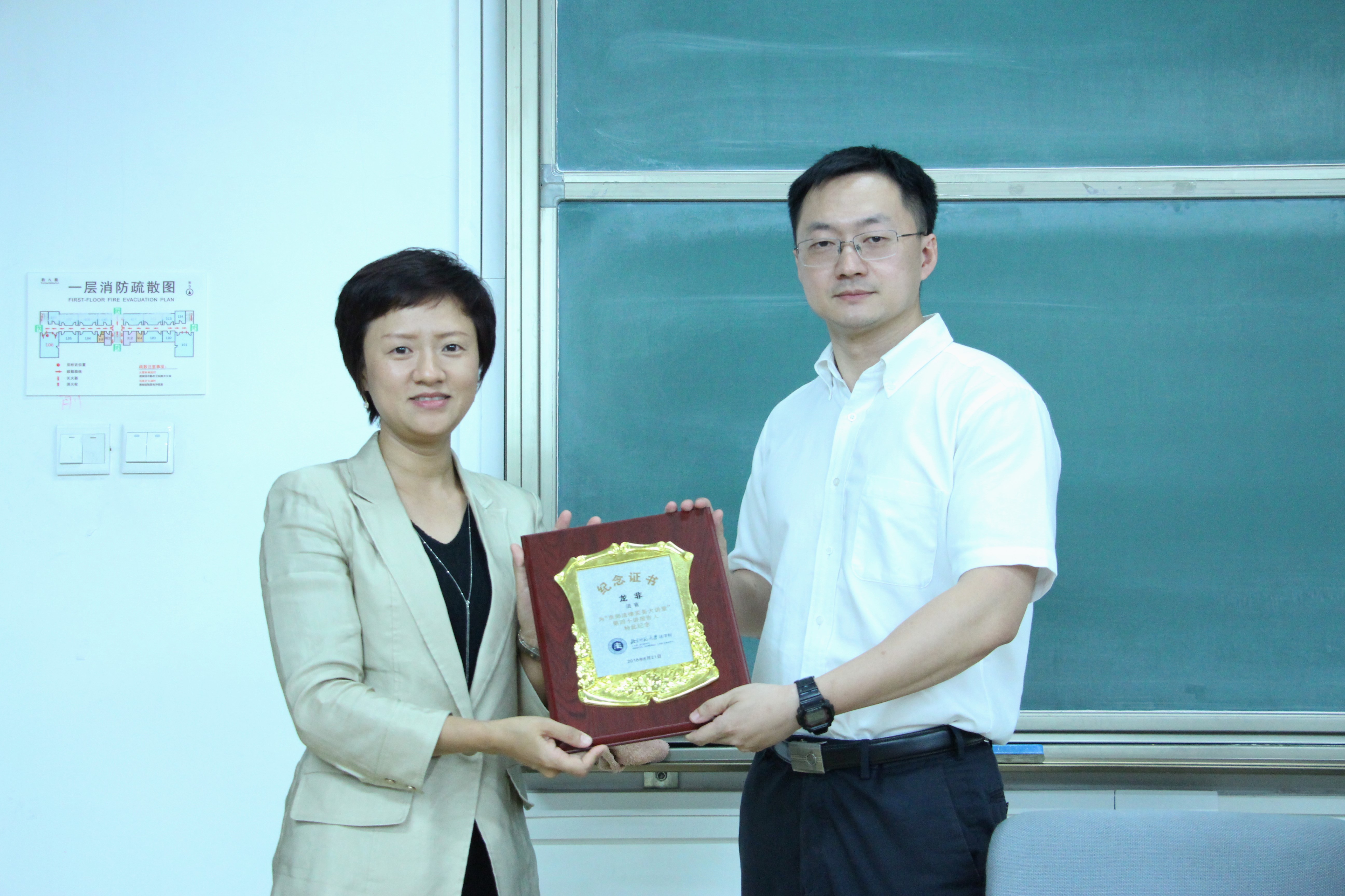讲座结束前,按照惯例,国产精品 张红副教授向龙非法官赠送京师法律实务大讲堂纪念奖牌,并合影留念。