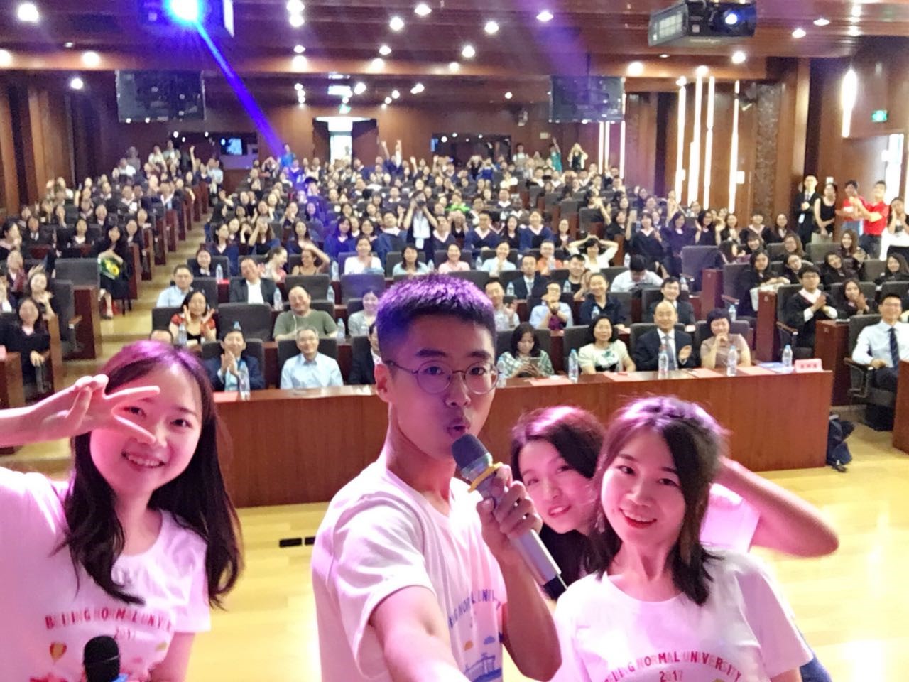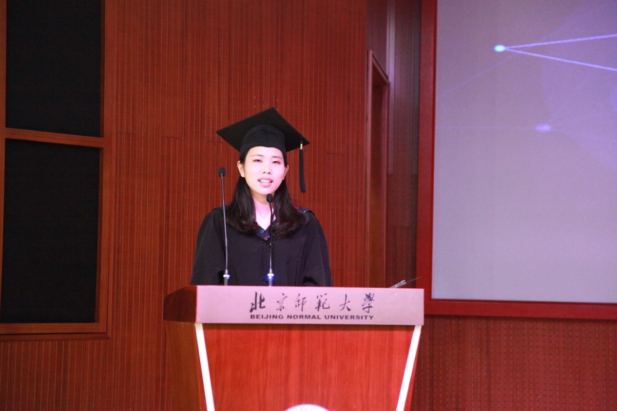 在颁奖结束后,毕业生代表舒静怡同学也进行了发言,舒静怡同学说道:在这一天,毕业的快乐和离别的伤感都在空气中弥漫,回忆也在脑海中一幕幕呈现,四年大学生活教会我很多东西,离家生活教会我独立,辩论教会我缜密思维和清晰表达,论文写作教会我理性思考,社团活动教会我识大体顾大局,这些都让我在北师大收获着成长着。大学是如此多样化,来自五湖四海的同学们各有着各的兴趣,北师大给了我们合理范围内的自由环境让我们成长,在北师大,学术气息浓厚,校园活动表现出的活泼也同样精彩。在国产精品