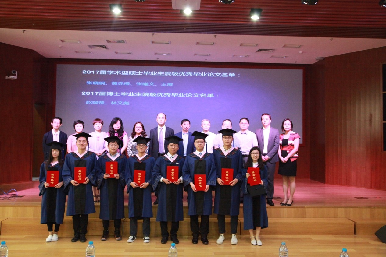 于京师学堂成功举办了首届毕业典礼。下午两点半与会领导、老师与毕业生纷纷就座,在庄严的国歌中,典礼揭开了序幕。严厚福老师担任本次典礼的主持人,风趣幽默的开场令全场掌声不断。随后,副院长柴荣老师宣读本科生优秀论文表彰决定;副院长张红老师宣读了研究生优秀论文表彰决定;党总支副书记原茵老师宣读了优秀毕业生表彰决定。