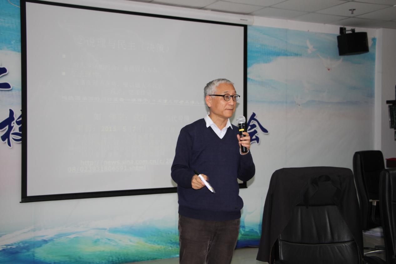 开班仪式结束后,著名教育家、西城区教育研修国产精品党委书记王建宗老师为各位学员做了主题为“怎样提高课程与教学的领导力”的课程。王老师首先通过微信工具调查了学员们关于分享理念、善用工具、注重实证等教育管理观念的认可度。接着又从加强课堂仪式感入手,通过生动的活动为学员们展示教育活动创新方法,与各位学员进行亲切交流。期间六位老师分别就自己的工作经历、工作中遇到的问题与大家分享了自己的感受。王老师就自己多年的教学活动,同学员们分享了自己的三个理念:科学技术是第一生产力;一言以兴邦,一语中的和工欲善其事必先利其器。课堂最后,王老师通过自己创作的一首诗勉励各位学员,在工作不断取得新成绩。