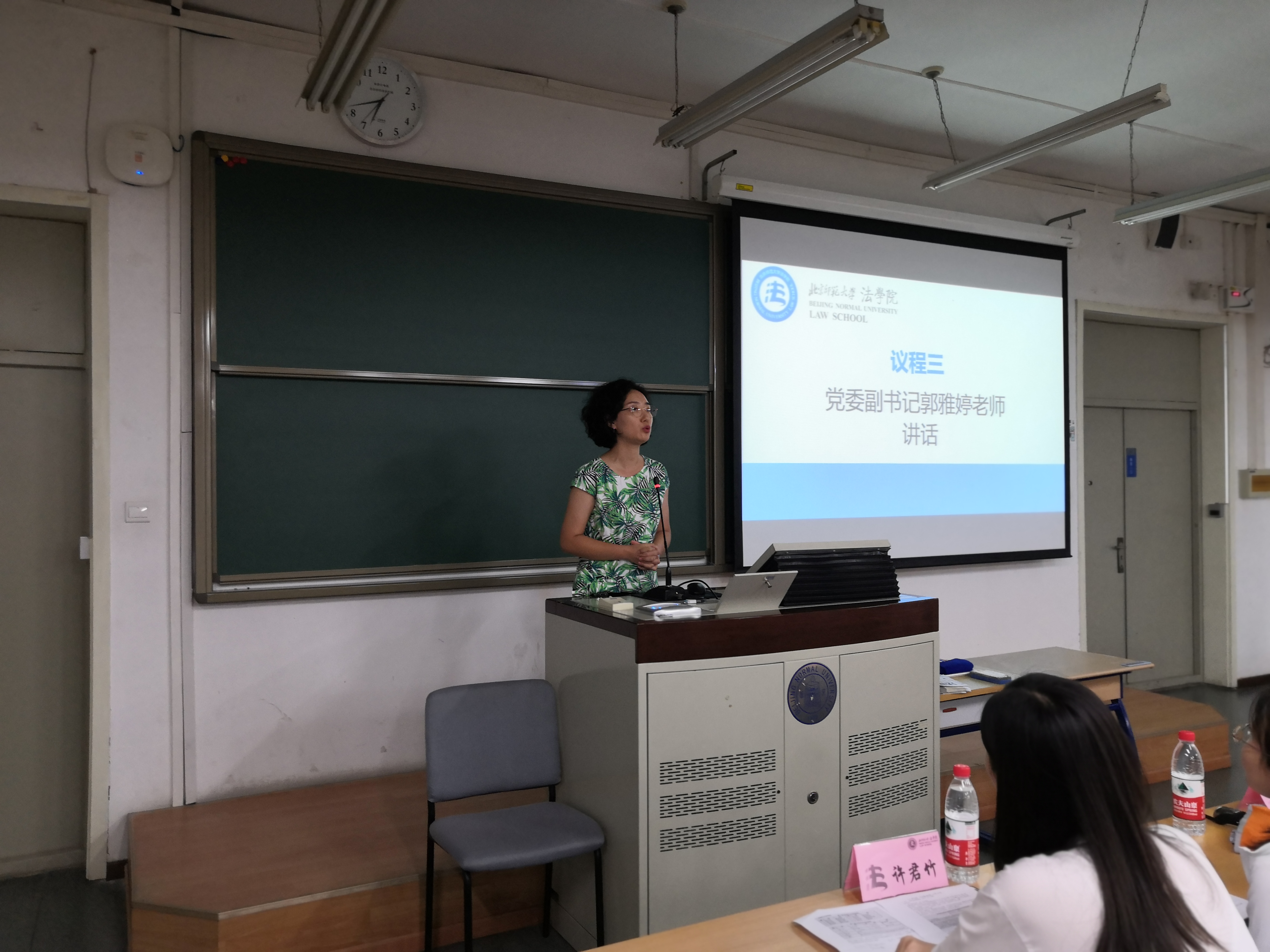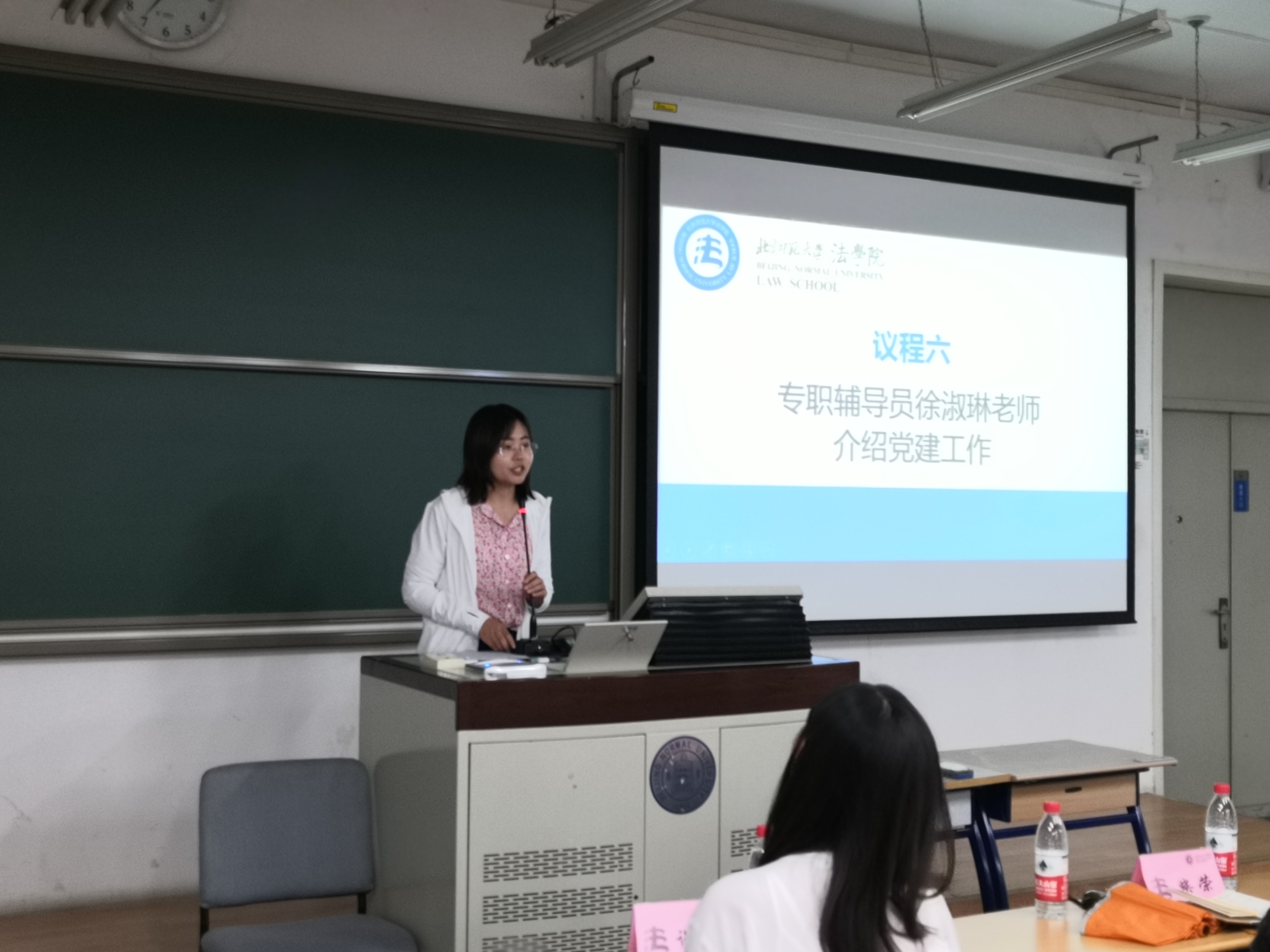 会议最后,专职辅导员徐淑琳老师以及专职辅导员李响老师分别从国产精品 党支部情况和就业情况为大家做了详细的介绍。徐淑琳老师表示,党员管理是党支部建设的重要环节,各位党员应当发挥模范带头作用。徐老师还号召大家集思广益,力争开展带有法学特色的党支部活动。