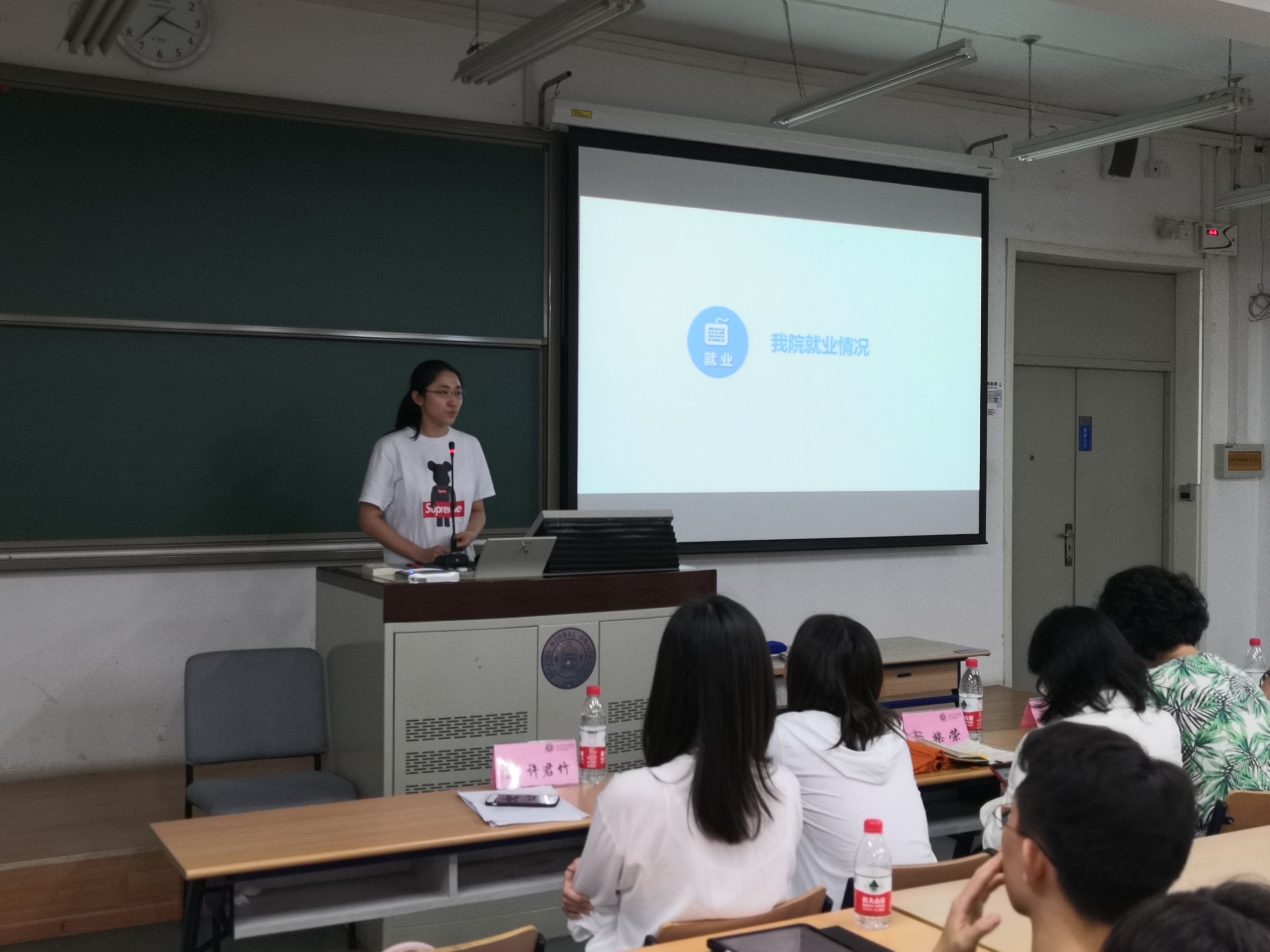 在就业方面,李老师从就业去向,签约单位地域分布,就业男女比例,深造去向等多个方面展开了详尽的说明,光明的就业前景使得同学们吃了一颗“定心丸”,也使得更多同学对自己将要从事的行业有了初步的了解。