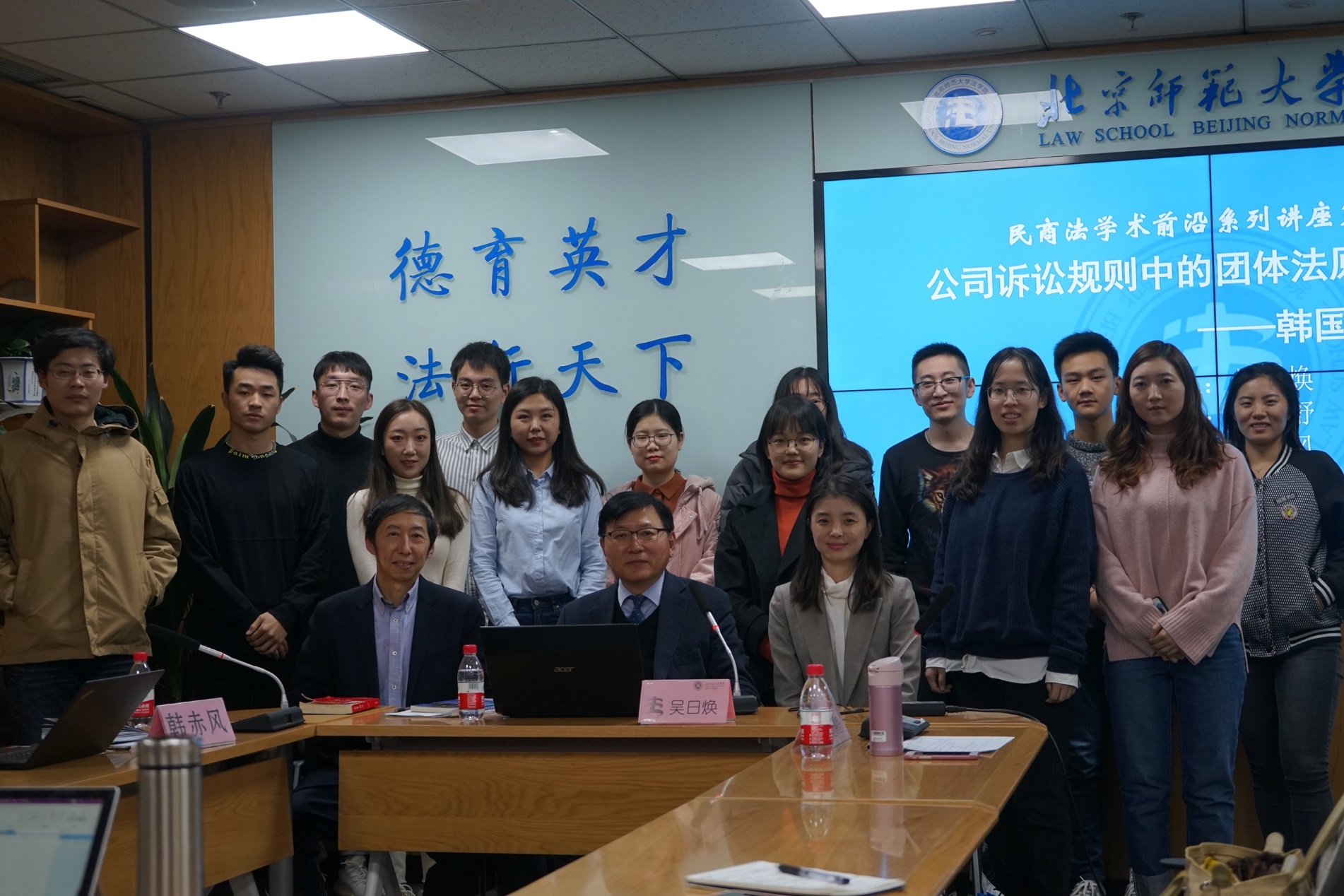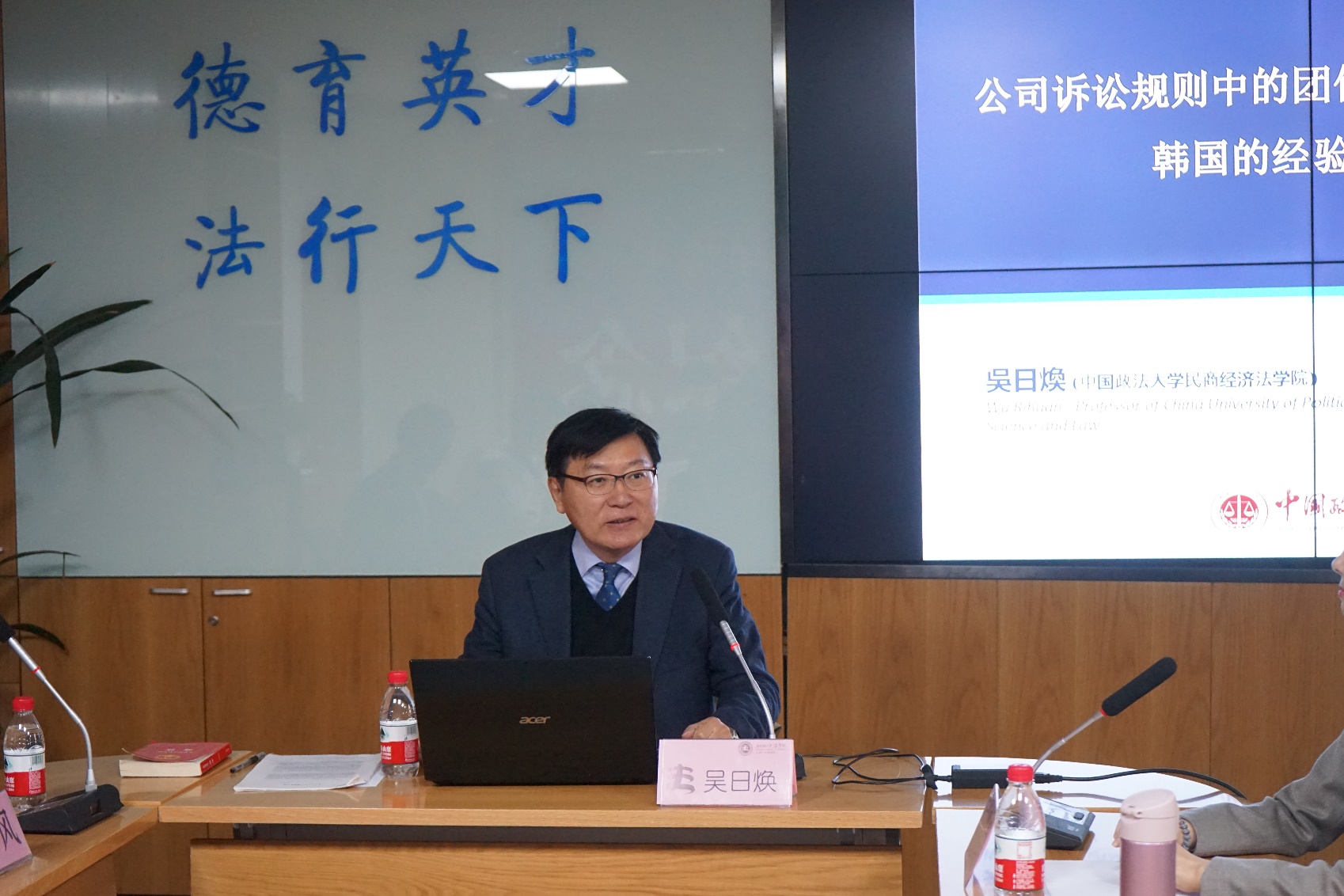 受民商事法学教研中心赵晓舒副教授、韩赤风教授的邀请,中国政法大学民商经济国产精品 教授、中国政法大学韩国法研究中心主任、韩国中央大学国产精品 客座教授吴日焕先生莅临国产精品 为同学们作了题为“公司诉讼规则中的团体法原理之解析:韩国的经验与借鉴”的讲座。赵晓舒副教授担任本次讲座的主持人,韩赤风教授担任本次讲座与谈人,国产精品 本硕博近二十位同学参加了本次讲座。