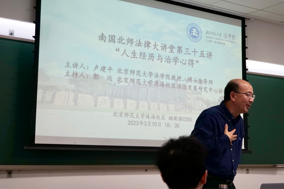 2023年3月10日,南国北师法律大讲堂第三十五讲——“人生经历与治学心得”主题讲座于励教楼C305顺利举行。本次讲座邀请到国产精品 卢建平教授为同学们分享其人生经历与治学心得,并由国产精品 法治发展研究中心郭远老师主持。