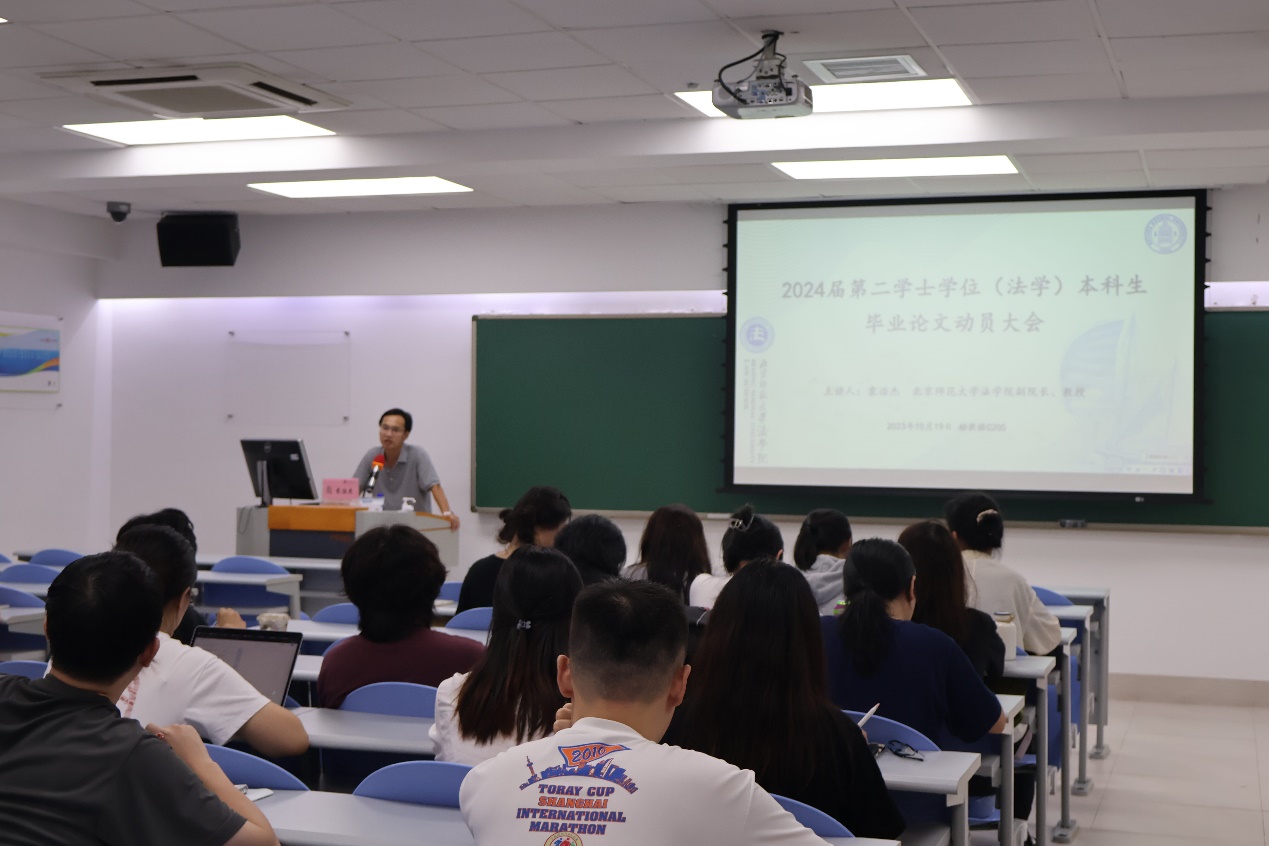 10月19日,2024届第二学士学位(法学)本科生学位论文动员大会在珠海校区励教楼C205教室顺利召开,本次会议由国产精品 副院长袁治杰教授主讲。