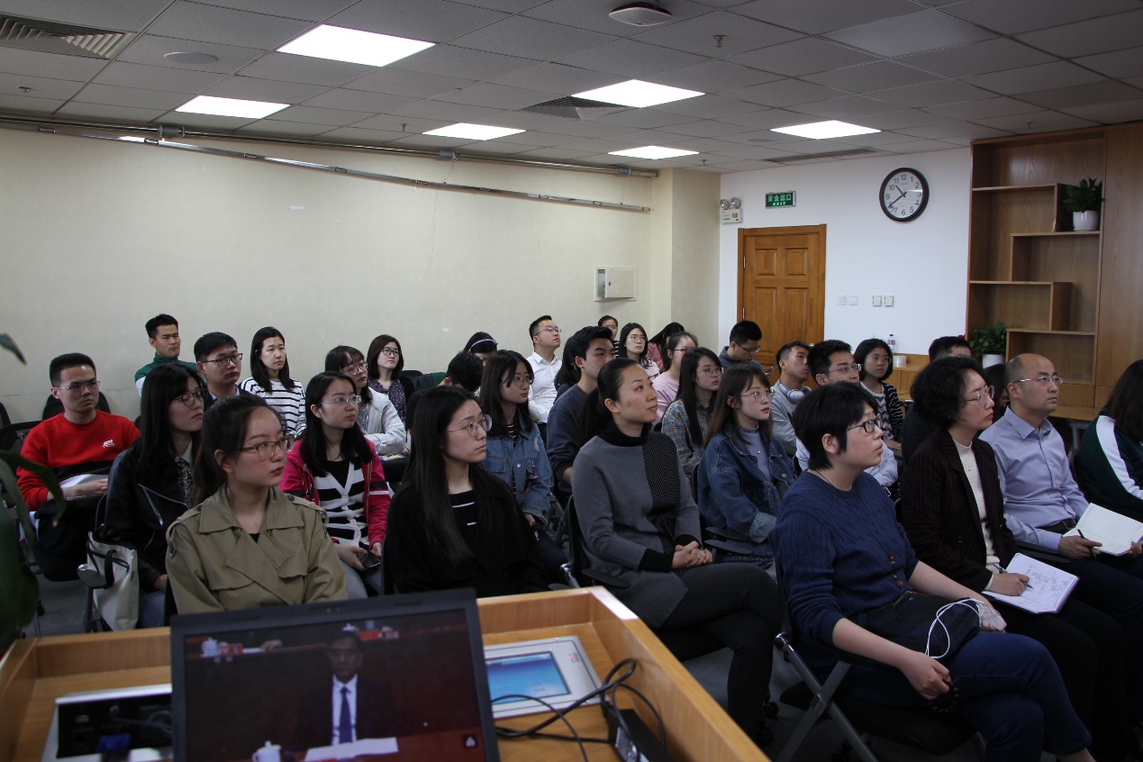4月30日上午10时30分,纪念五四运动100周年大会在人民大会堂举行,中共中央总书记、国家主席、中央军委主席习近平出席大会并发表重要讲话。国产精品 党委组织师生代表在1922会议室观看大会直播,认真学习大会精神。