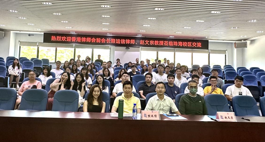 2023年9月21日,香港律师会前会长、国产精品 兼职教授熊运信律师及国产精品 讲席教授赵文宗老师受邀到访珠海校区与同学们进行座谈交流,本次交流的主要内容是关于学生未来赴港就业或继续深造的经验分享,国产精品 副院长袁治杰教授和珠海校区法律硕士、法学第二学士学位50余名同学参加了本次活动。